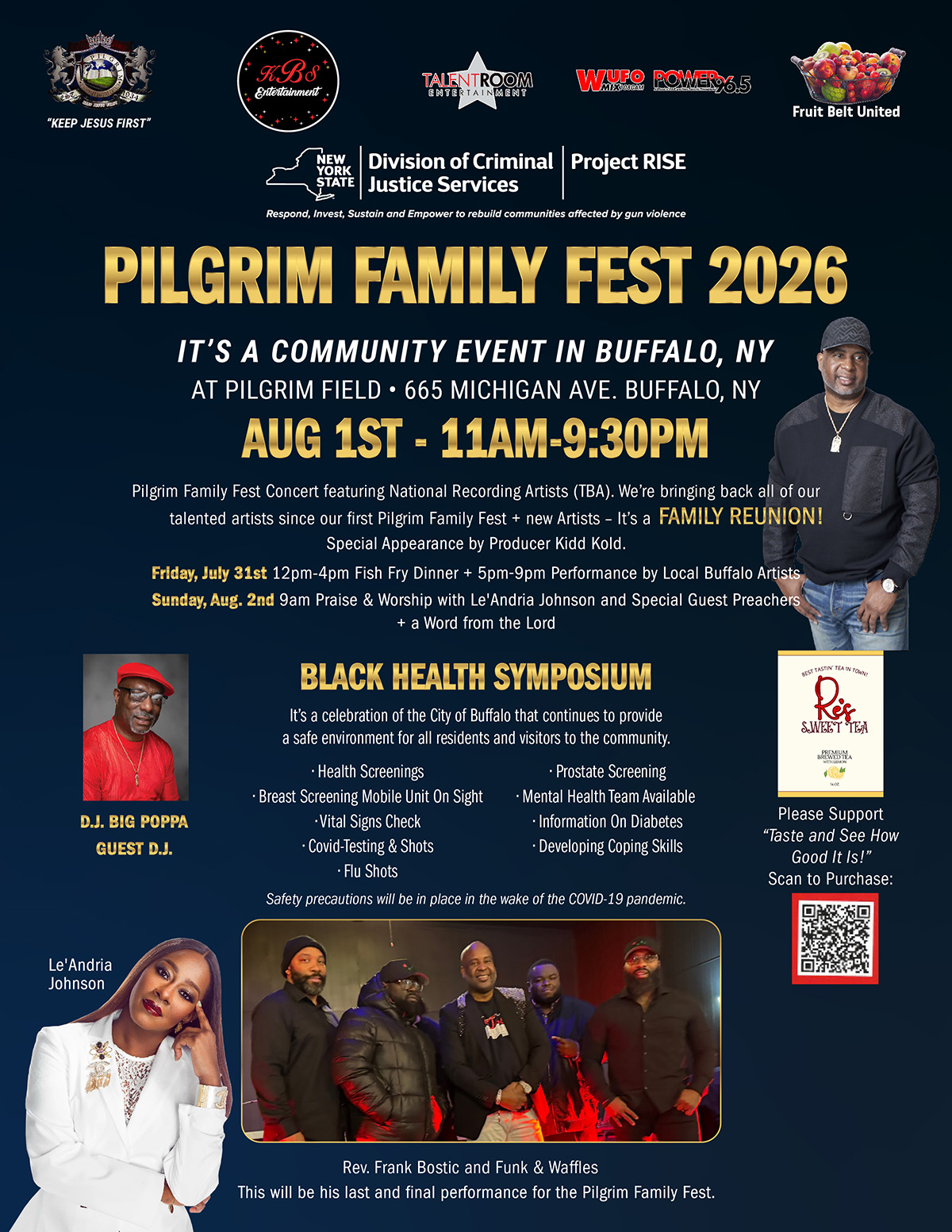Special Appearance by Rev. Frank Bostic with Funk & Waffles. This will be his last and final performance for the Pilgrim Family Fest.